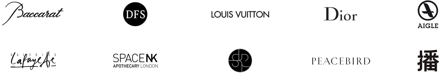 CHINA ADEO AIGLE AMAZING PEACE BABYLAND BACCARAT BAGPIPE BALABALA BENATRY BOYI BROADCAST C&A CACHE CACHE CAMAIEU CARREFOUR DANONE DEUX MAGOTS DIOR DIRK BIKKEMBERGS DOMLAR DU PAREIL AU MÊME EICHITOO EHE ELEGANT PROSPER ESMOD ETAM EURAZÉO FENGFENG&DIDI FUDEBAO FUN GALERIES LAFAYETTE GUERLAIN HAPPYCHIC HANXU HENESSY HERBORIST HOME’S UP HP ID IENIN IF KISCICA LANCOME LINING LEDIN LVMH MAD MAYBELLINE MARK FAIRWHALE MARCOLOR MAOREN MATERIAL GIRL MBSKY MEFOREVER METERSBONWE MINIPEACE MIXC MONCLER NAIVEE LES NEREIDES L‘OREAL PEACEBIRD PETIT AVRIL PETIT BATEAU PUIG RENAULT ROSSIGNOL SHAKE SKP 3 SUISSES SIMONE PÉRÈLE SPACENK SPORT AILE SYMRISE URBAN REVIVOL WANDIAN WEISIMAN WHOS NEXT YEARCON YISHION Y.SING YVES ROCHER ZHE JIANG STYLE